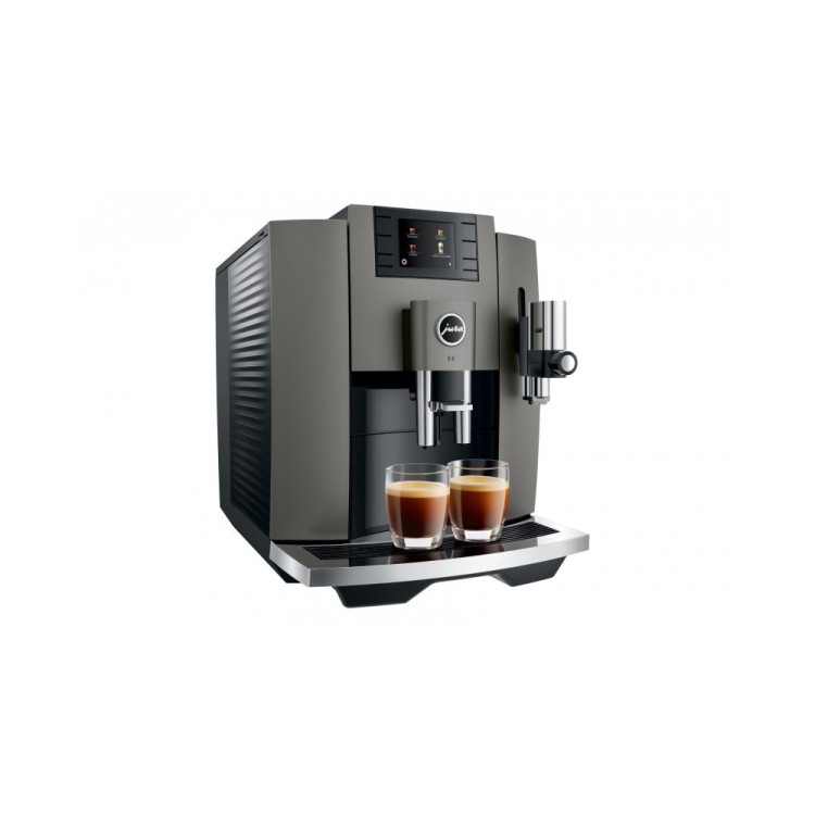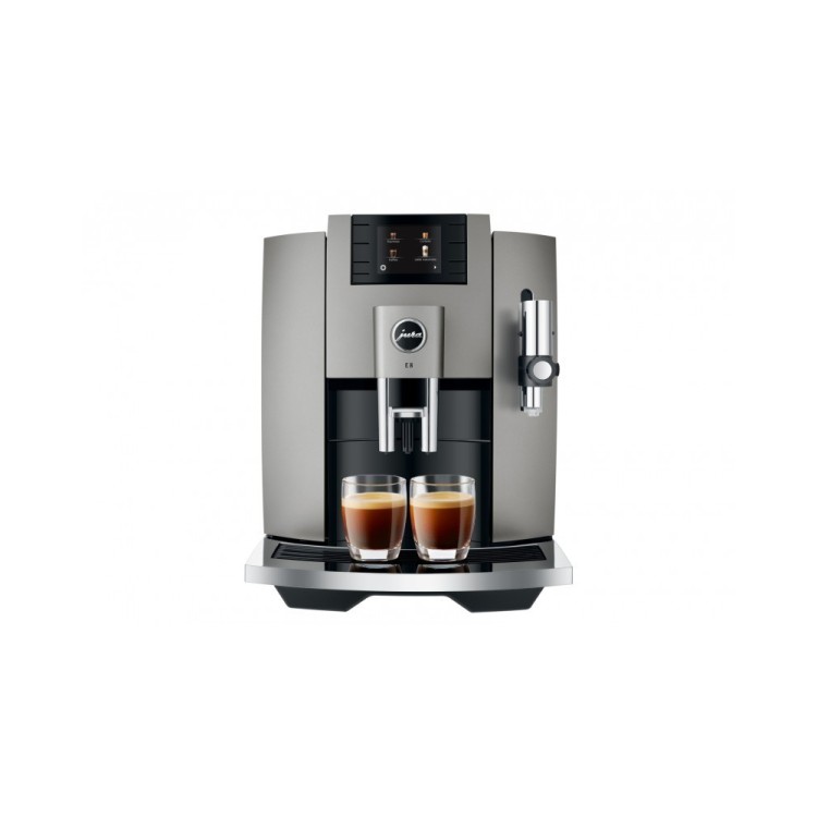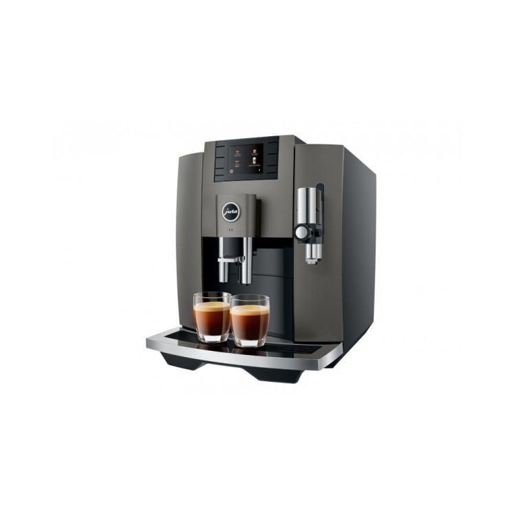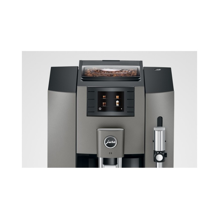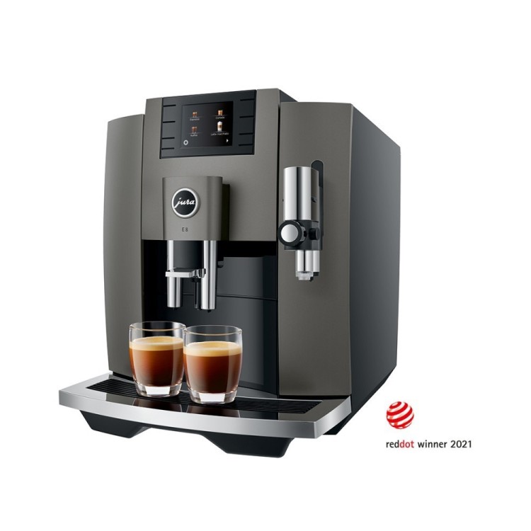 Charakterystyczne wzornictwo ekspresów automatycznych JURA jest przejrzyste i wyraziste. Wysokiej jakości materiały i precyzyjne wykonanie podkreślają najwyższą jakość nowoczesnego E8. Jego wzornictwo już teraz oznacza jakość, funkcjonalność i trwałość. Detale takie jak rowkowany zbiornik na wodę lub wysokiej jakości tacka na filiżanki dopełniają przejrzyste i harmonijne wzornictwo E8.