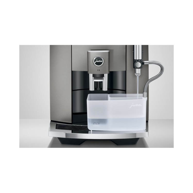 Zaawansowany systemy przepływu sprawia, że nawet czyszczenie systemu mlecznego odbywa się automatycznie za naciśnięciem jednego przycisku. Kolejna funkcja E8 znana z wiodących linii JURA. Ponadto przekonuje jeszcze bardziej intuicyjną i łatwiejszą obsługą.