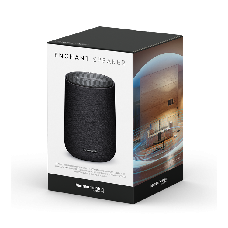 Harman Kardon Enchant Speaker to połączenie ponadczasowego designu i wyjątkowego brzmienia. Dzięki technologii Dolby Atmos® Music głośnik zapewnia przestrzenny, trójwymiarowy dźwięk, który wypełnia całe pomieszczenie. Wbudowane przetworniki kierujące dźwięk ku górze i na boki sprawiają, że nawet w kompaktowej formie uzyskujesz efekt otoczenia muzyką z każdej strony.